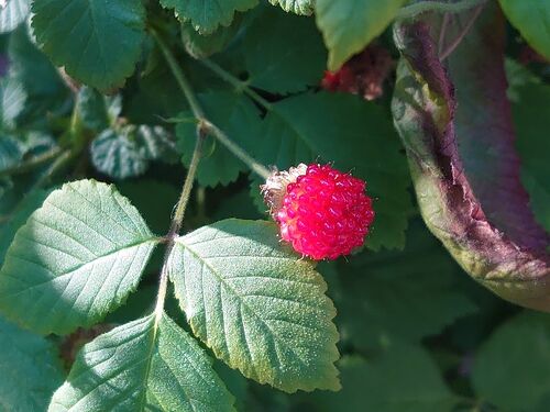 今日も、両親はガーデニング。 いろいろ折衝しながら??楽しんでるようです。 これは、ラズベリー! 一つ、取っていいというので♪ 赤く、粒々なラズベリー! 食べると、どこかりんごのような味わいでしたね♪ レモンの花も、香っていますね~♪ 実がなるのは…