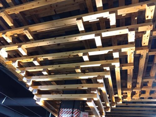 これ、東武線竹ノ塚駅の、ホーム屋根の支柱です。 木組みで覆われていますね。 もちろん、飾りでしかないんですが、日本人は木で作ったものに、安らぎを感じます。 竹ノ塚駅は、いわゆる東武スカイツリーラインでの、拠点駅の一つです。 すぐ近くに、車両基…