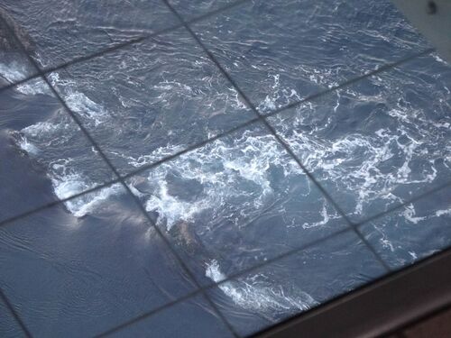 徳島県の鳴門海峡にありますね。 渦潮! これは、阿波一国のお遍路の旅で、撮ったもの。 「渦の道」という施設で、ガラス張りの床から、渦潮が見えるようになっています。 渦潮の原理は、太平洋と瀬戸内海が、非常に狭い鳴門海峡でつながるため、非常に速い…